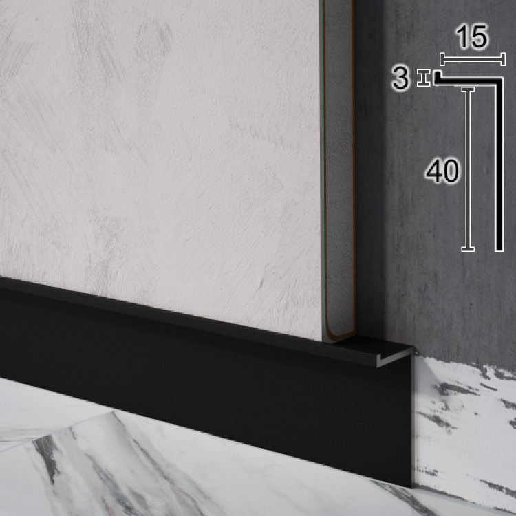 Чорний алюмінієвий плінтус прихованого монтажу, висота 40мм.